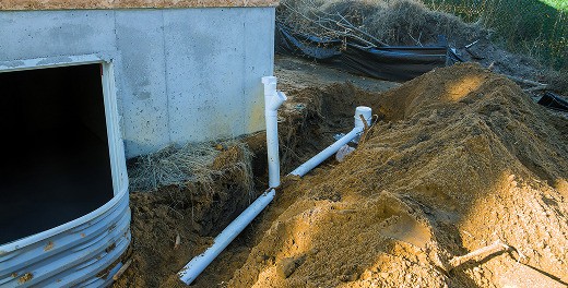 - Interior drain tile systems that route groundwater toward a sealed sump basin